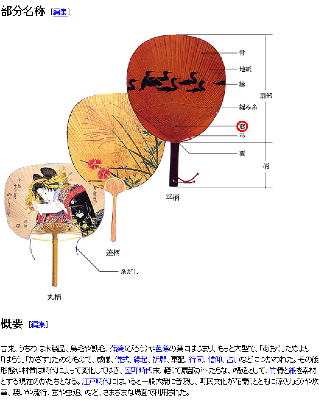うちわ(部分名称) 「ウィキペディア (Wikipedia): フリー百科事典」より引用