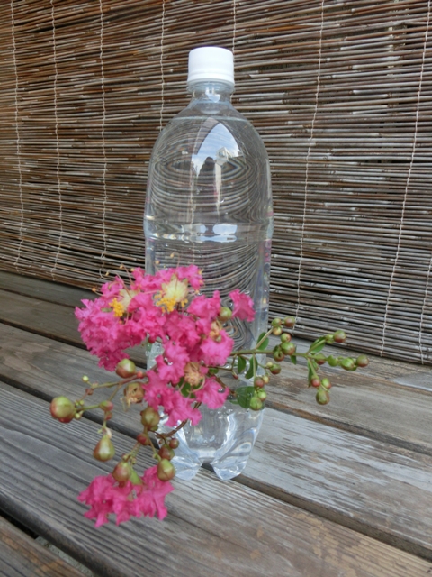 写真上 ペットボトル一輪挿し 花を挿して一輪挿しの完成です