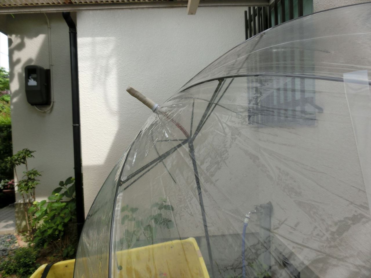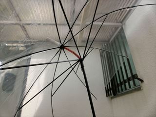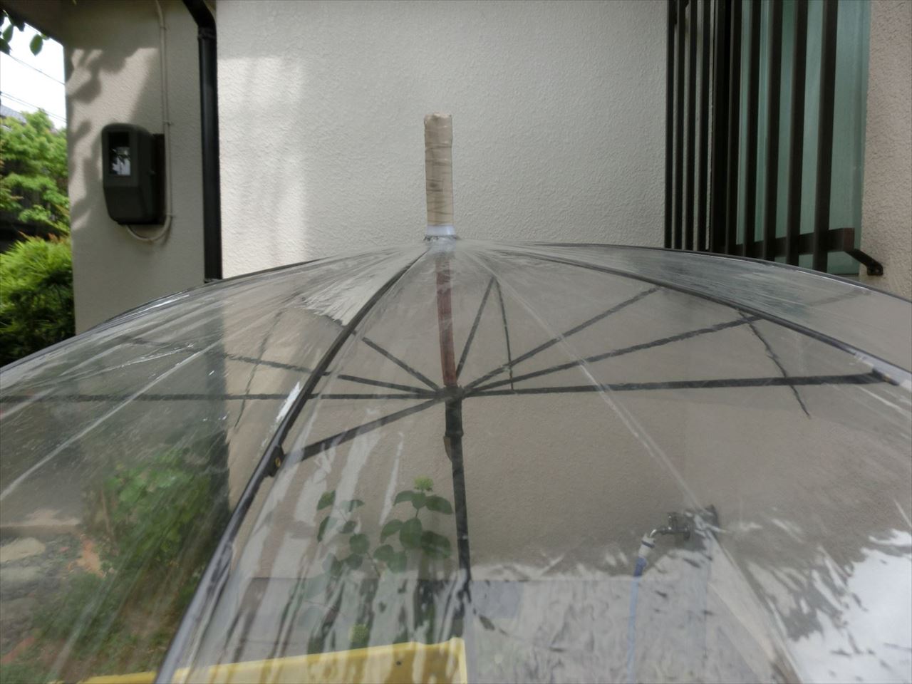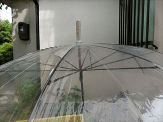 横からの風雨の時に風上側に傘軸を傾斜させなくても、傘布面のみが自動的に風上側に傾斜することで水濡れを防ぐことが出来ます。