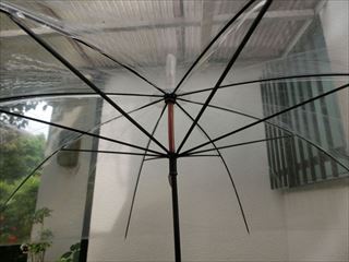 傘の、中棒の先端部に棒バネを入れ、風でバネが曲がることにより風に対抗できる傘。